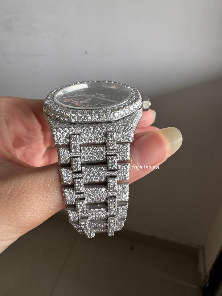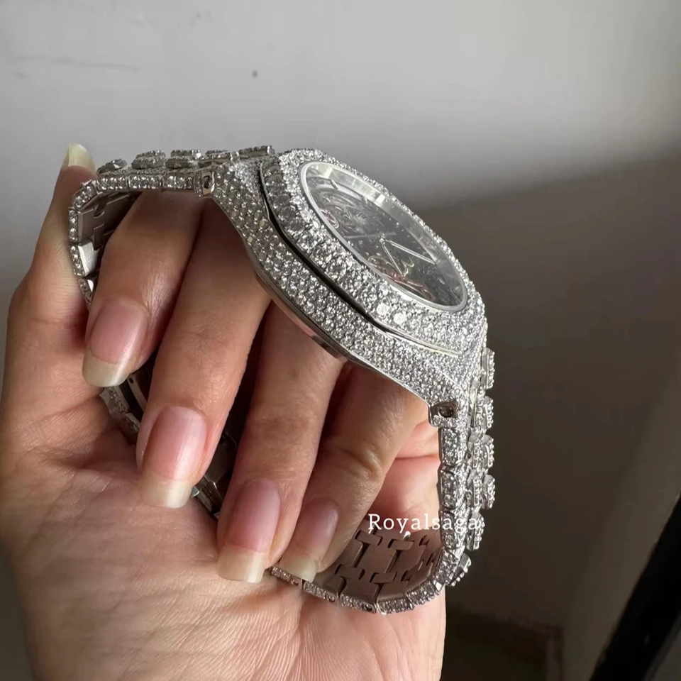 High Quality VVS Moissanite Diamond Watch for Men Quartz Movement Stainless Steel Band Iced Out Hip Hop Style