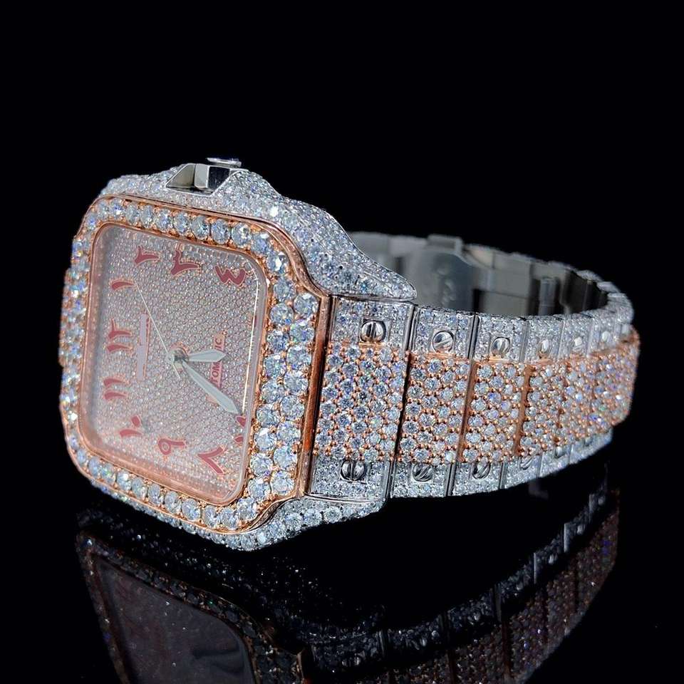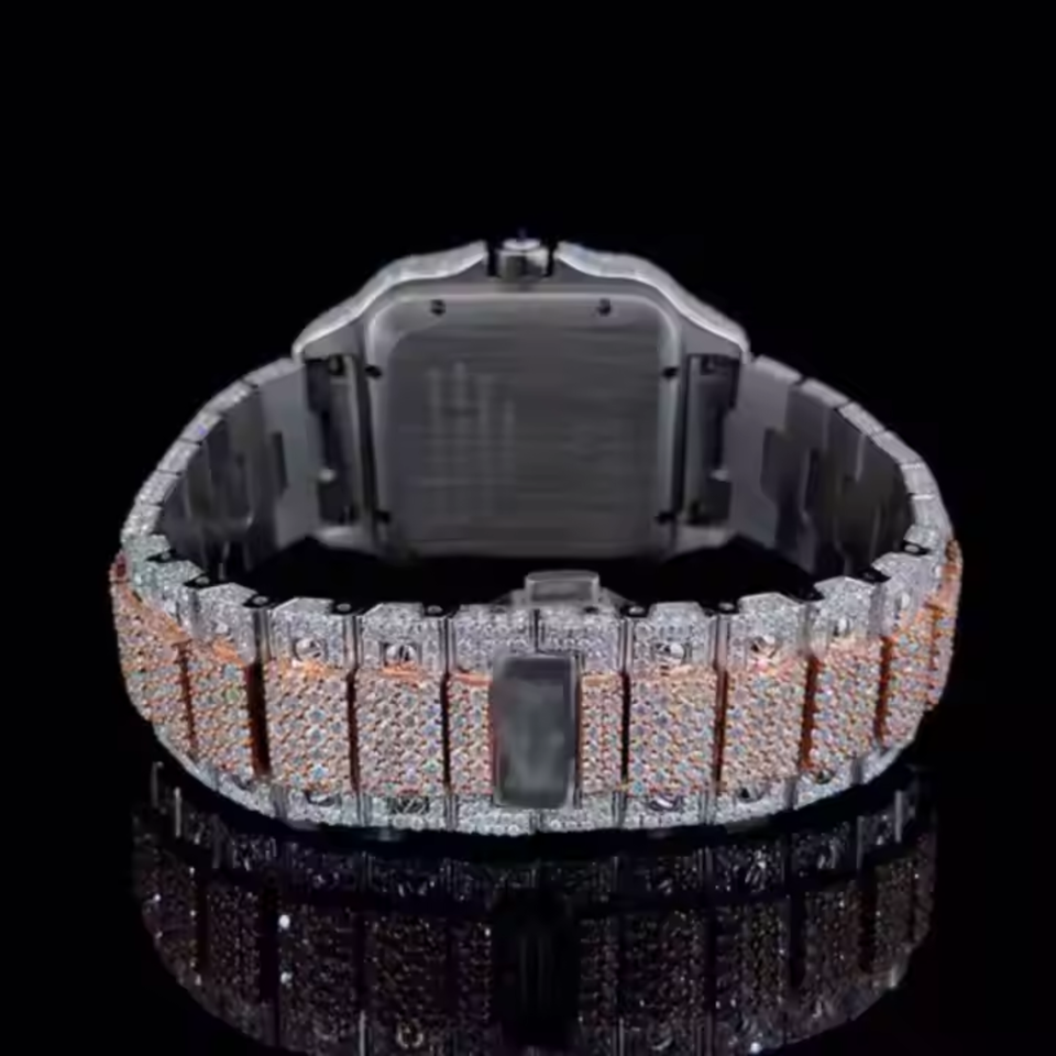 High Quality VVS Moissanite Diamond Wrist Watch for Men Hot Selling Stainless Steel Band Quartz Movement Iced out Hip Hop Style
