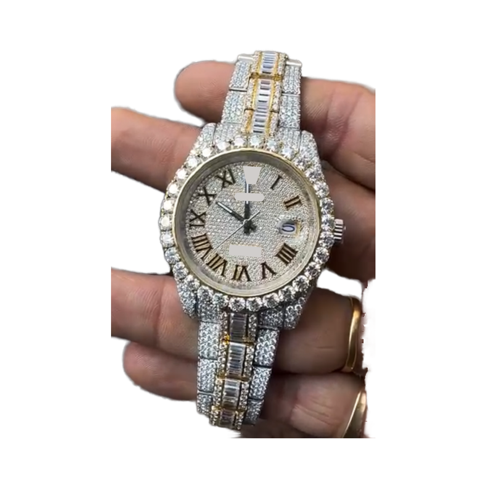 High Quality VVS Moissanite Diamonds Iced Out Fashion Stainless Steel Luxury Japanese Movement Auto Date Wrist Watch for Men