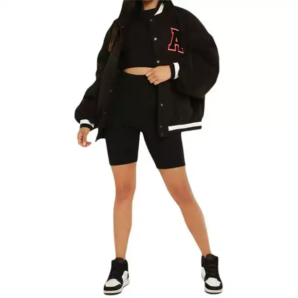 Unisex High Quality Quilted PU Leather Varsity Jacket Long Sleeves Printed Letter Embroidery Breathable Knitted Design Available