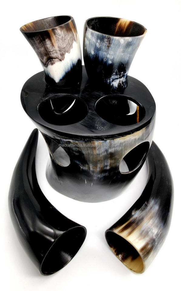 High Quality Viking Drinking Horn Glass Cup Custom Logo Animal Style Brass Rim Natural Shape Polished Technique Home Decoration