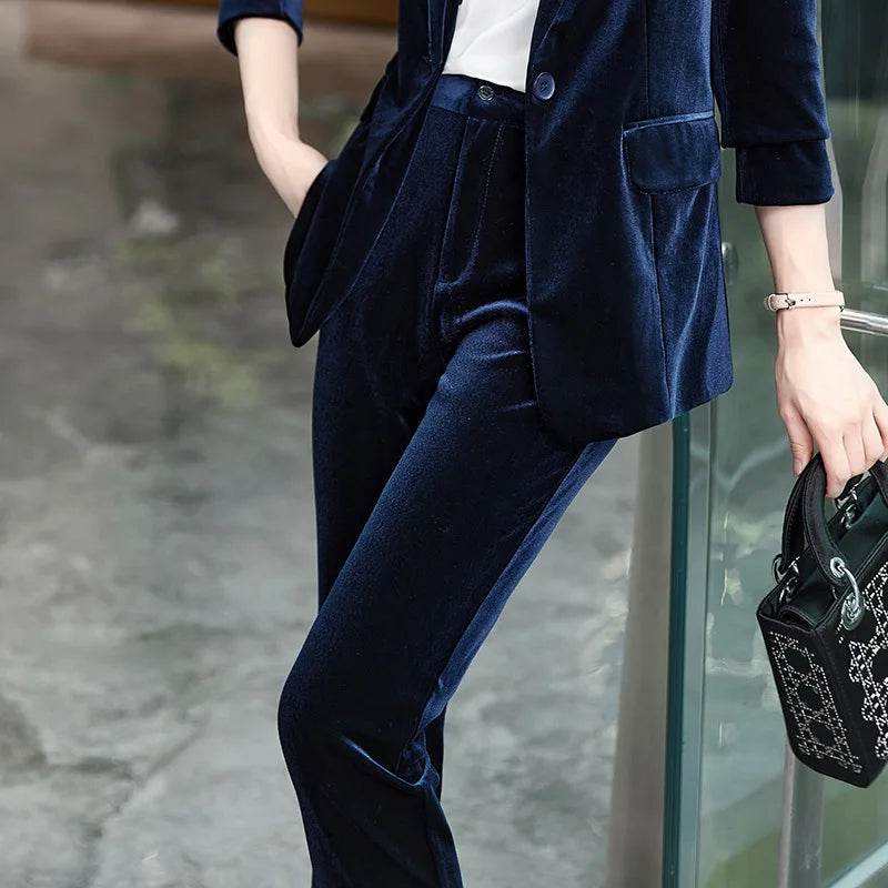 High Quality Velvet Female Pantsuits Professional Career Blazers Set for Women Formal Business Coats Jacket for Office Career