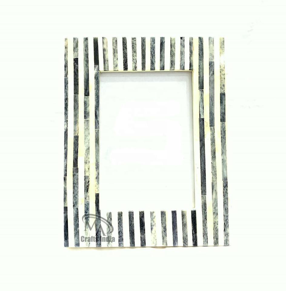 High Quality Vintage Bone Inlay Photo Frame Hand Carved Black White Gray Wood Home Decor with Glass Metal Resin Plastic