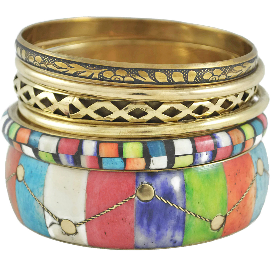 Brass Bangles and Bracelets With Mother Of Pearl Inlay