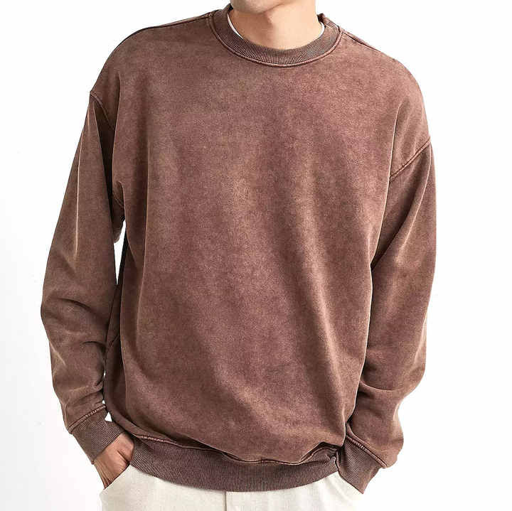 High Quality Vintage Cotton Crewneck Pullover Acid Wash Sweatshirts for Men 300 Grams OEM Service Digital Printing for Winter