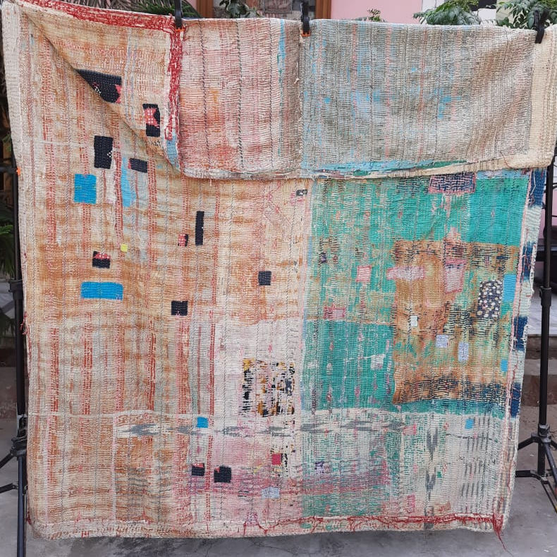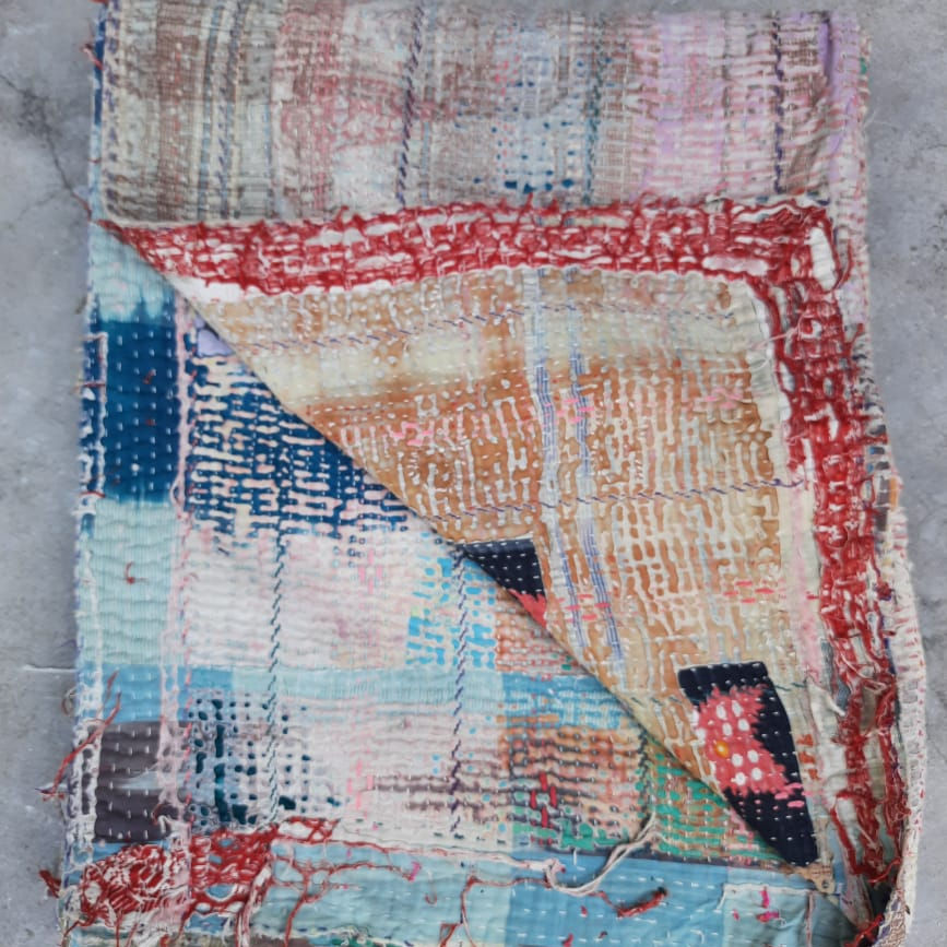 High Quality Vintage Kantha Throw With Handmade Embroidered, Patch Work Design Dhurries Home Furnishing & Garments Redesign