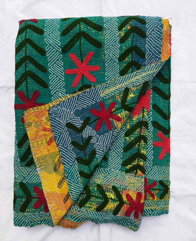 Design Style:Vintage Kantha Quilts With Handmade Embroidered Design