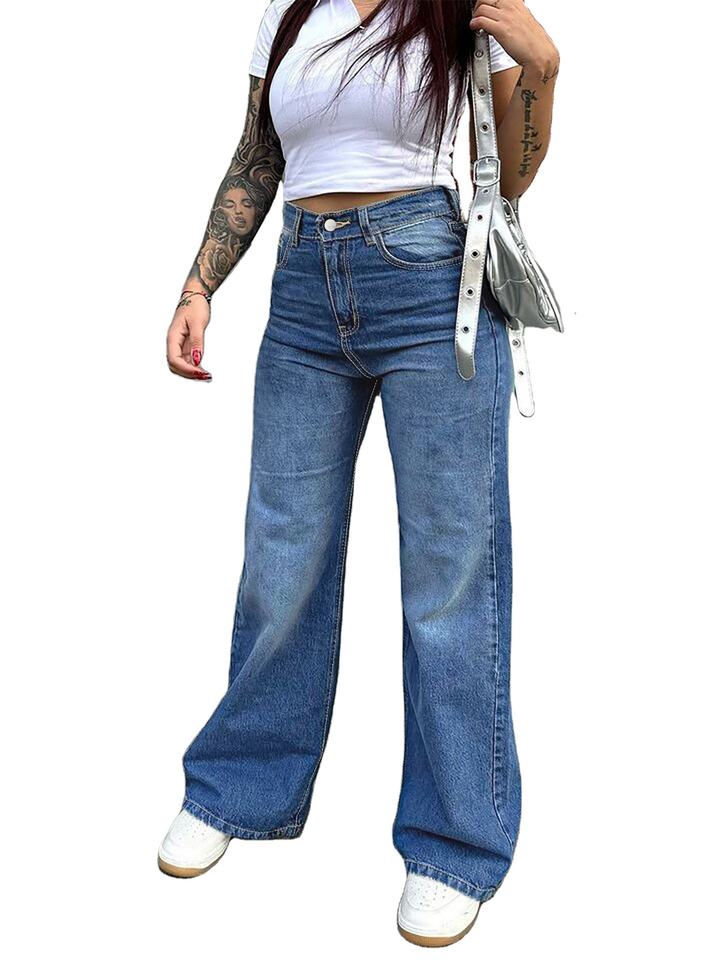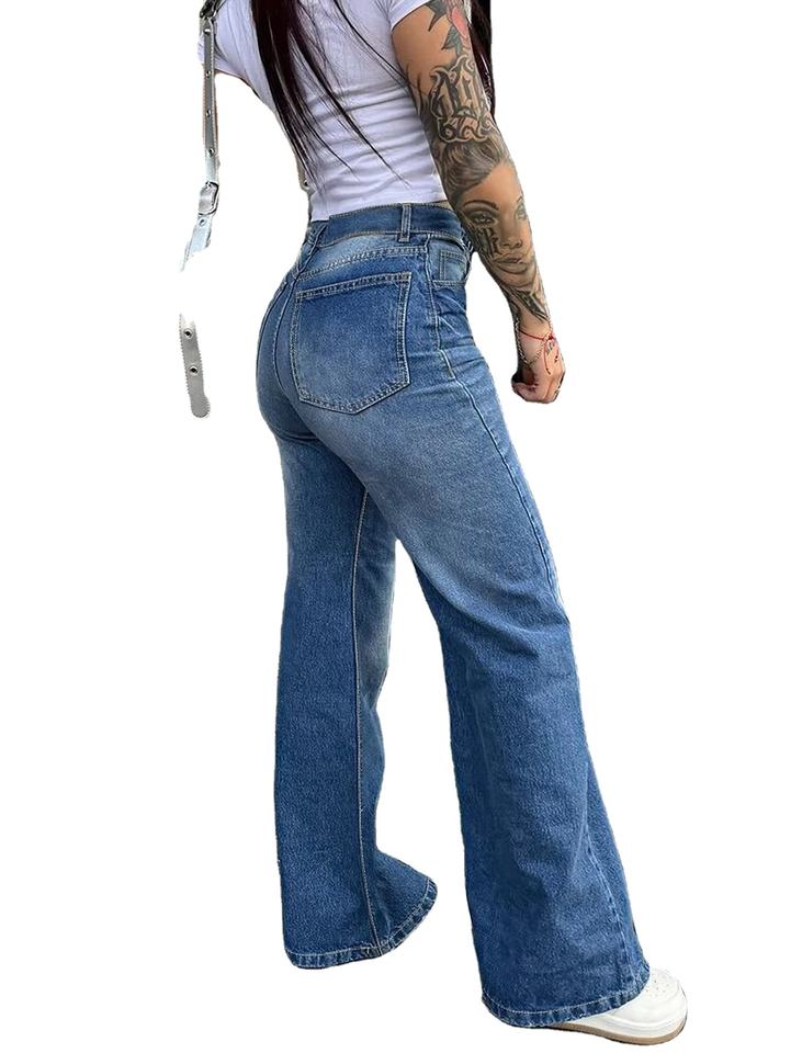 High Quality Vintage Men's Slim Mid Waist Flat Denim Pants Polyester/Cotton Breathable Distressed Chemical Wash Lightweight