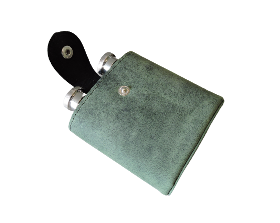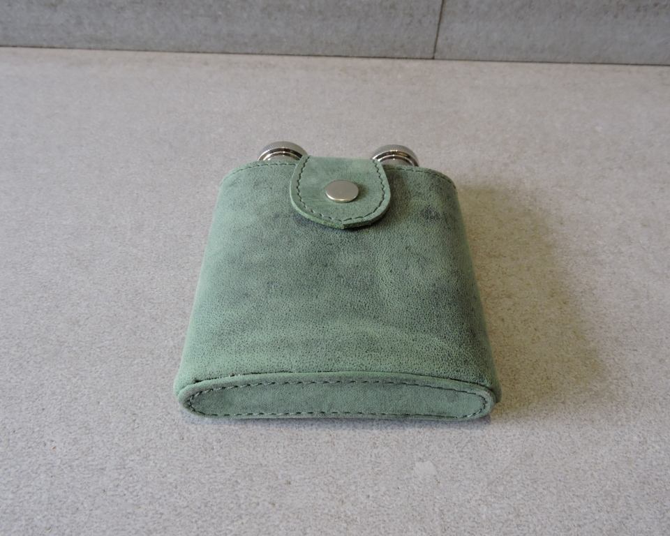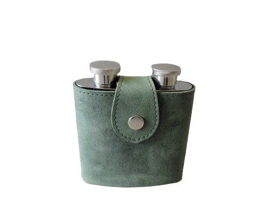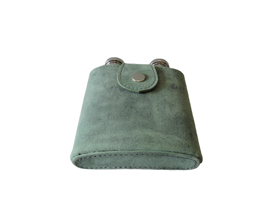 High Quality Vintage Olive Green Luxury Leather Hip Flask Portable Case Two Wine Flask Removable Bottle Cover with Snap Closure