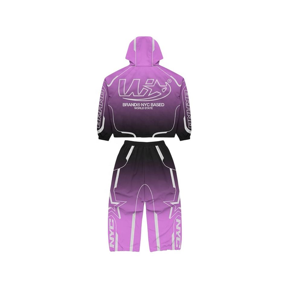 High Quality Vintage Plus Size Hooded Lightweight Printed Unisex Windbreaker Tracksuit 100% Polyester Nylon Fabric Sweatsuit