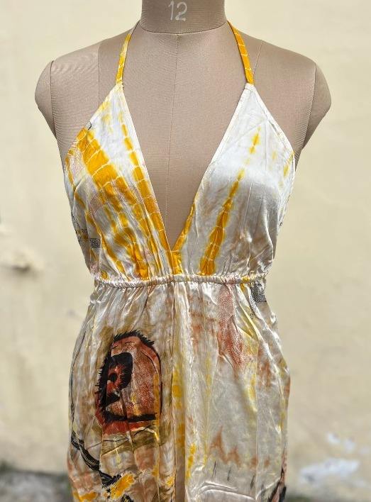 High Quality Vintage Silk Tie Dye Dress for Girls Summer Beach Loungewear with Logo on Back Indian Silk Dress for Wear