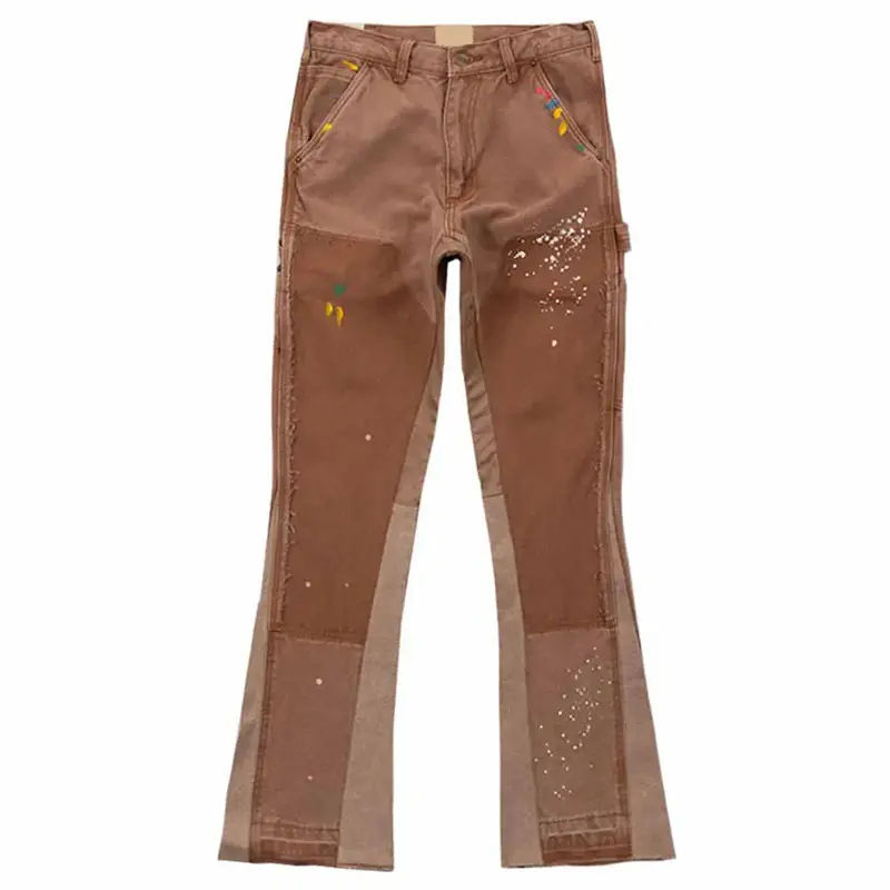 High Quality Vintage Stacked Pants Custom Logo Double Knee Straight-leg Denim Jeans Washed Rivet Decoration Streetwear Hip Hop