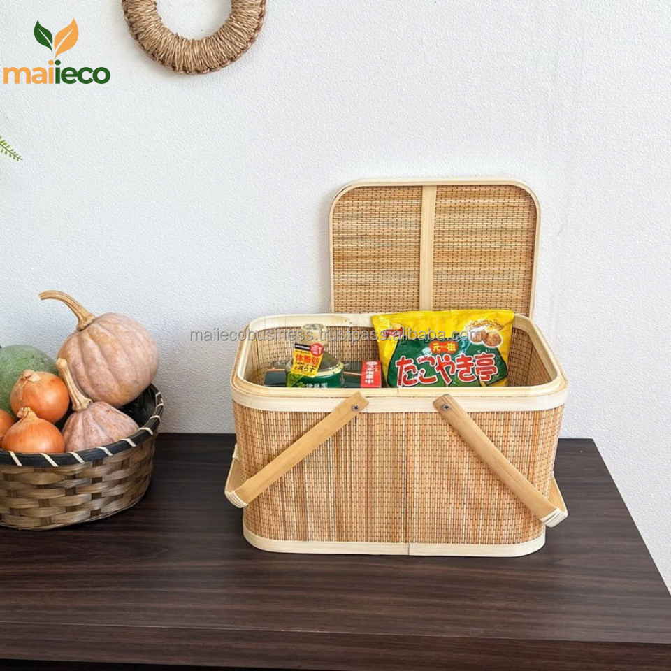 Descriptions:Handwoven Rectangle Bamboo Picnic Basket