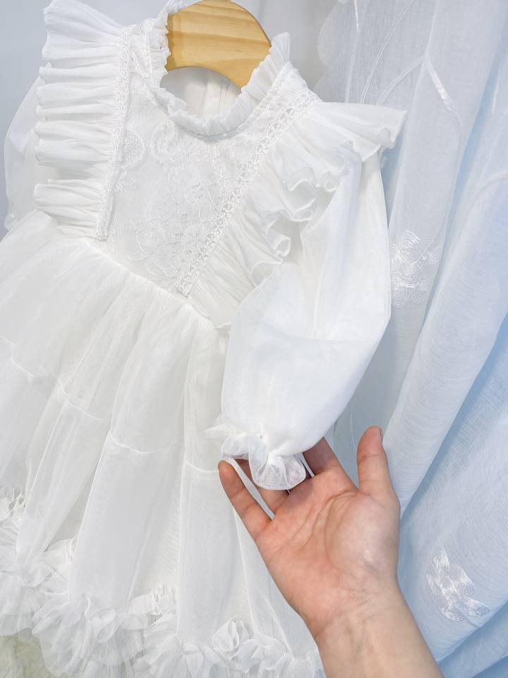 High Quality Vintage Style Girls Dress Halter Design Puff Sleeves Ruffles Lace for Casual/Party OEM/ODM Supported for Children