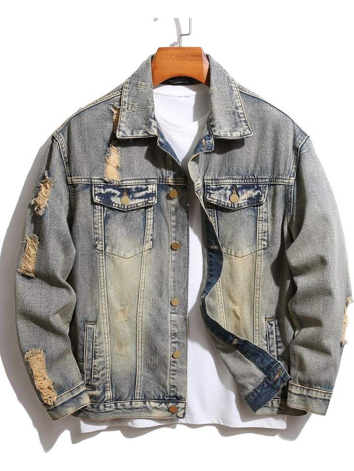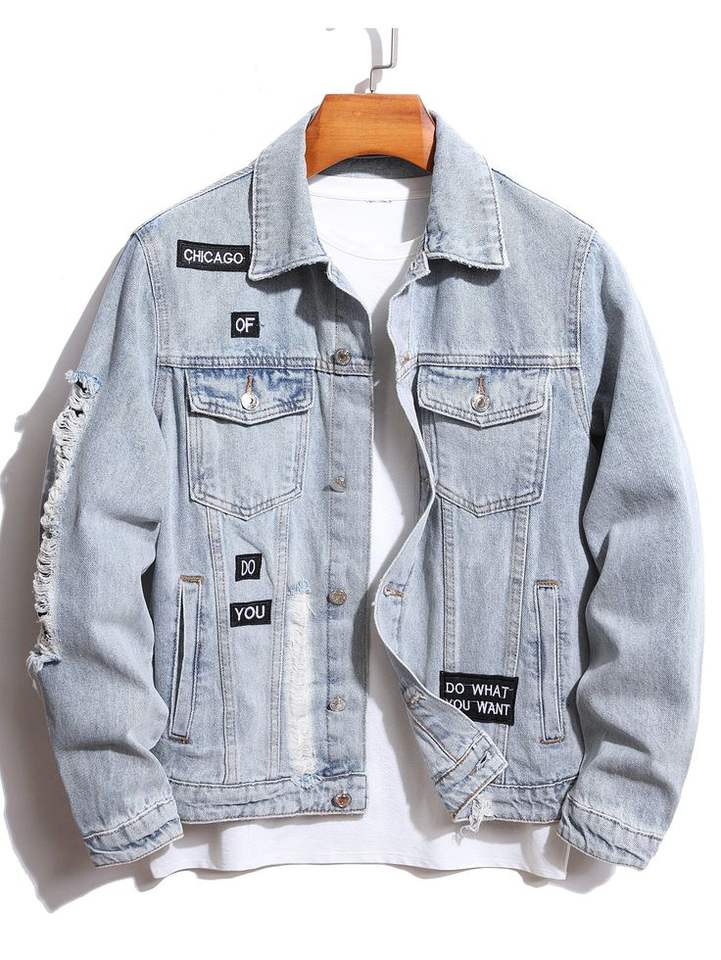 High Quality Vintage Winter Denim Jacket with Embroidery Casual Style for Men