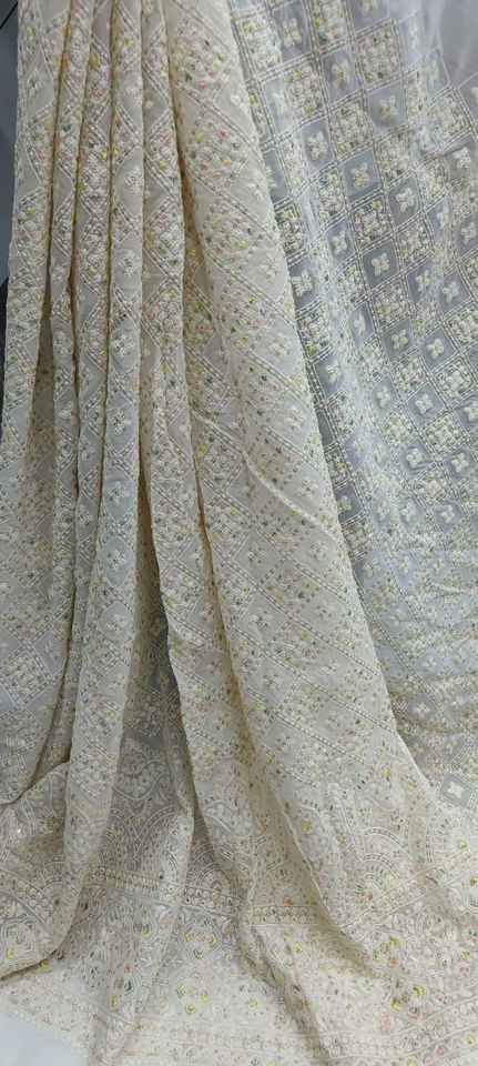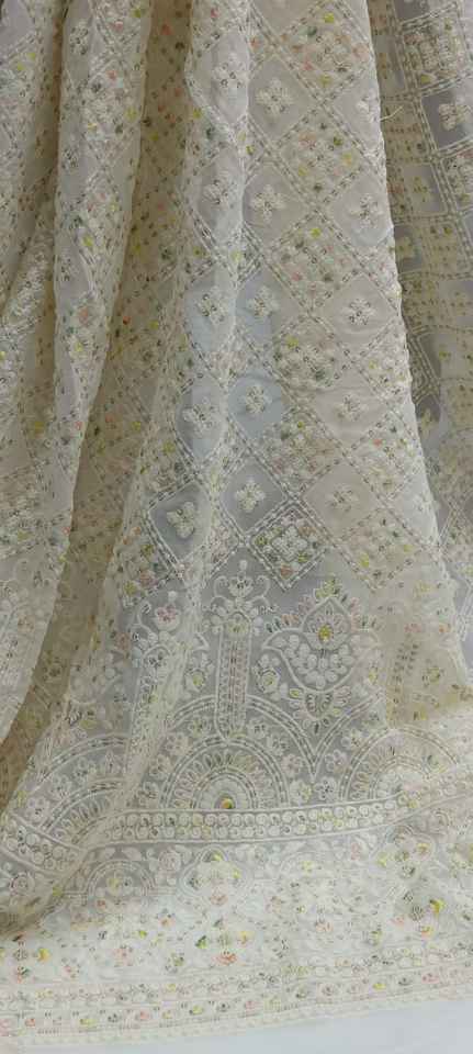 High Quality Viscose Georgette Fabric With Hand Embroidery Smooth for Fashion Clothing Dupattas and Blouses