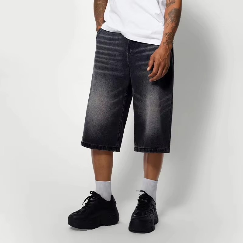 High Quality Washed Black Customized Knee Length Man Denim Jeans 2025 Summer Vintage Jorts Men's Baggy Jeans Shorts for Men