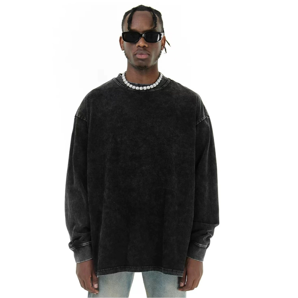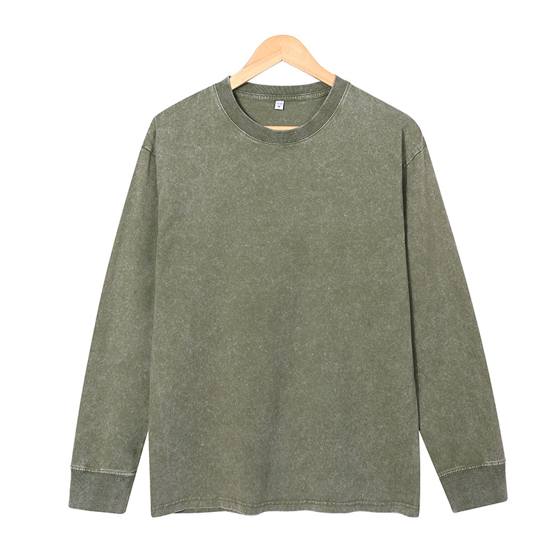 High Quality Washed Blank Long Sleeve T-shirt Custom logo 100% Cotton Crew Collar T-shirt for men