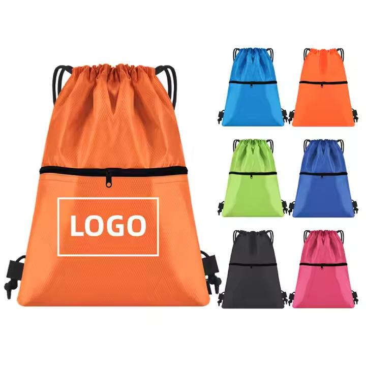 High Quality Waterproof Polyester Zip Drawstring Bag Can Be Customised logo Sports Drawstring Backpacks