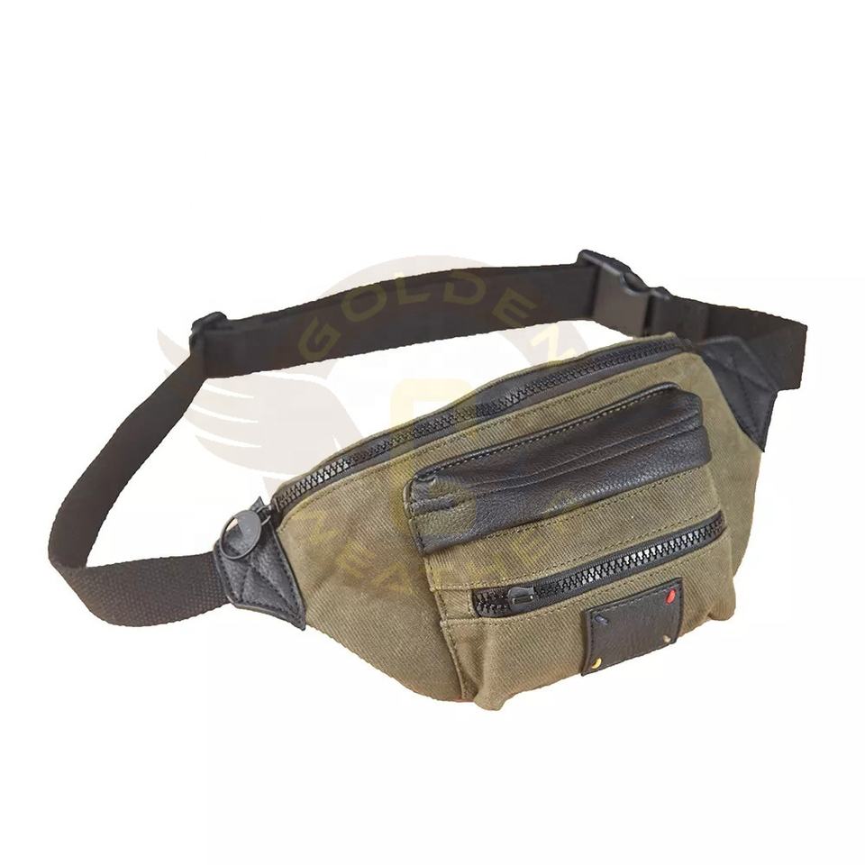 High Quality Waxed Coated Canvas Vintage Waist Bag Manufacturer Unisex Fashion Running Waist Bag Custom Leather Waist Bag Men