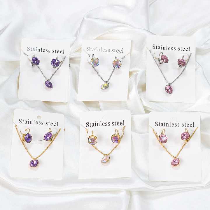 High Quality Wedding Dubai Bridal Stainless Steel Crystal Necklace Earring Jewelry Set Women Girls With Wholesale Price