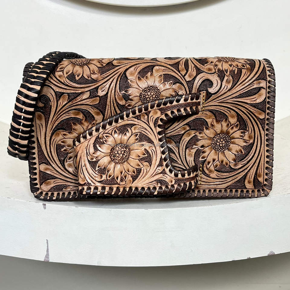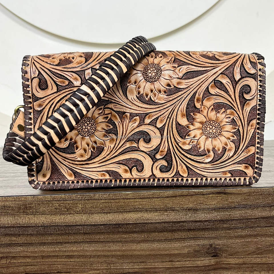 Product name:Hand Tooled Leather Crossbody Clutch Bag