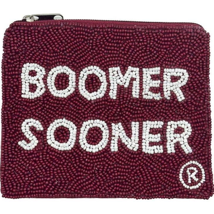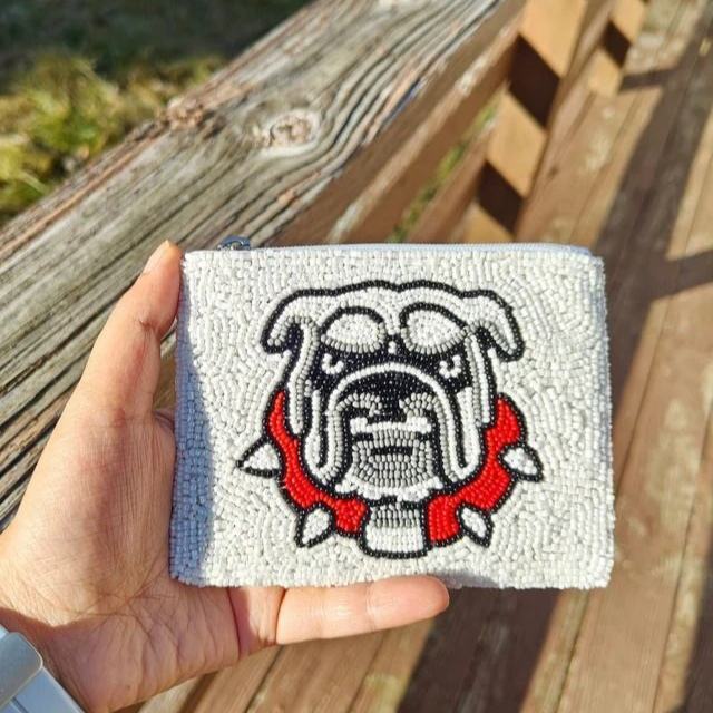High Quality Western Fashion Accessory Handcrafted Red Cowboy Beaded Pouch Mini Coin Purse with Zipper Closure Canvas Material