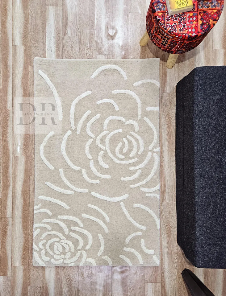 High Quality White Beige Rose Woolen Area Rug Hand Tufted Modern High-Low Pile Carpet for Living Room Bedroom Hall