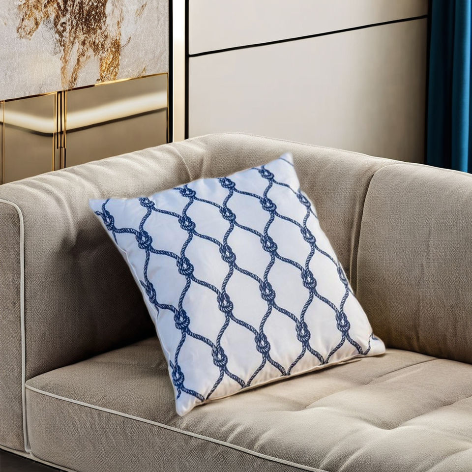High Quality White Cotton Throw Pillowcase Sofa Covers Embroidered Blue Robe Square Cushion Cover Wholesale for Home Spa Hotels