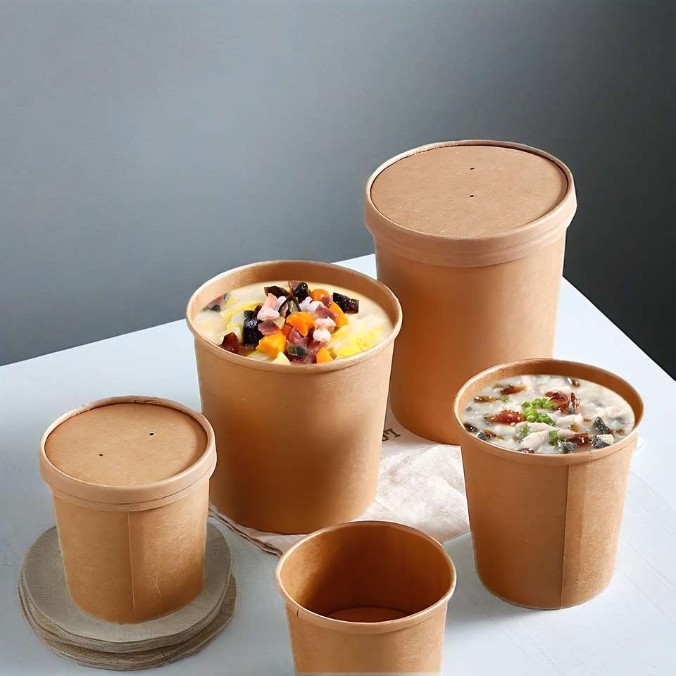 High Quality White Kraft Paper Cup and Bowl Waterproof Eco-Friendly Soup Bucket with Lid for Food Packaging
