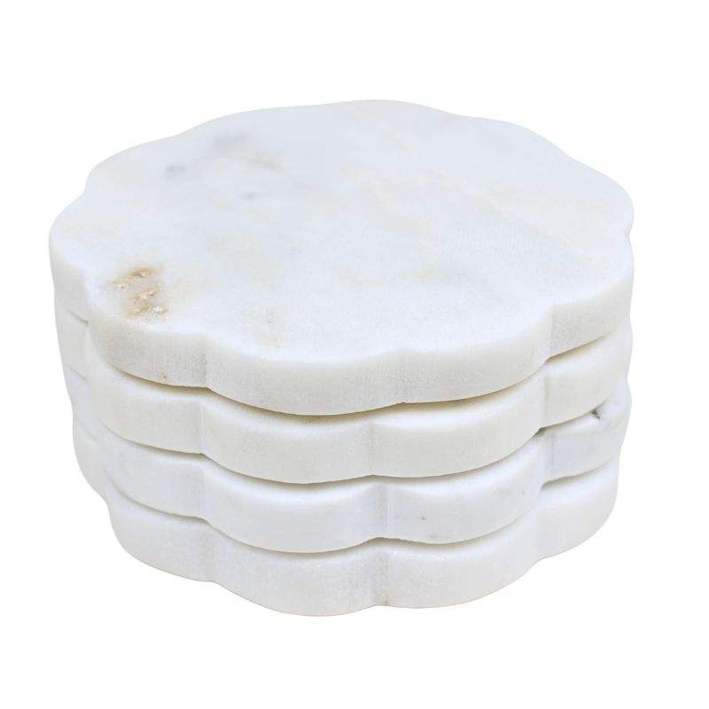High Quality White Natural Marble Stone Coasters Set Polished Round Party Decorative Drink Coffee Cup Coasters for Drinks