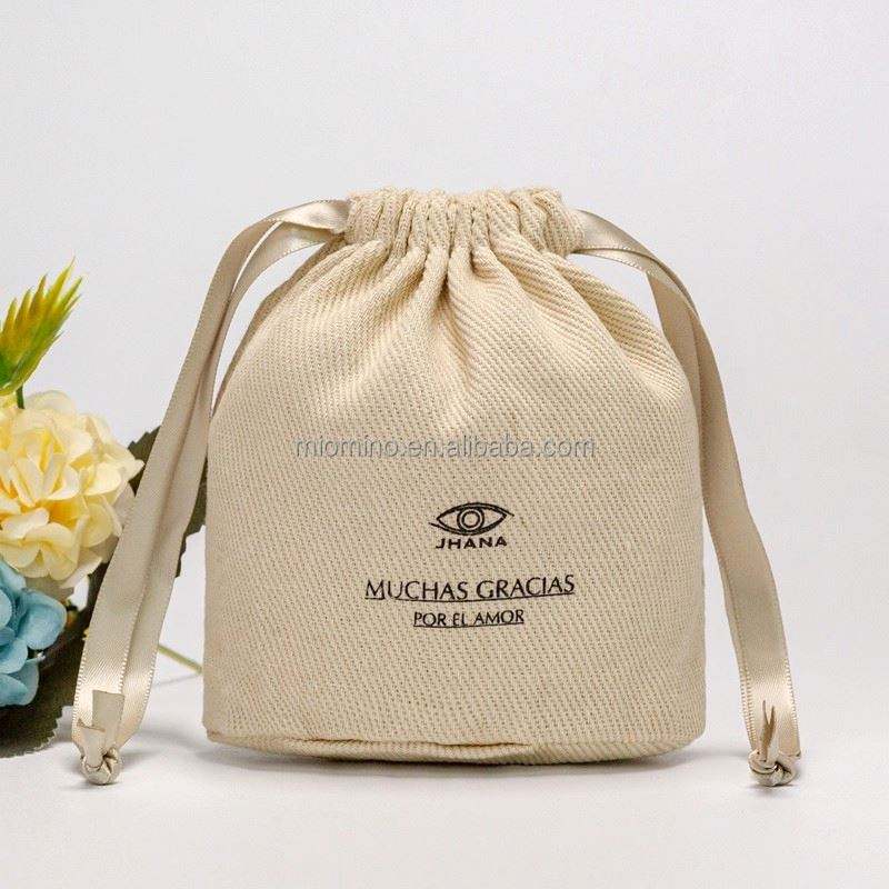 High Quality White Round Bottom Cotton Dust Bag for Skincare Products Custom Logo Drawstring Cosmetic Makeup Muslin Pouch