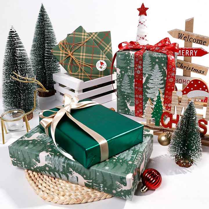 High Quality Wholesale 80g 43*300cm Christmas Green Packaging Paper Gift Wrapping Paper