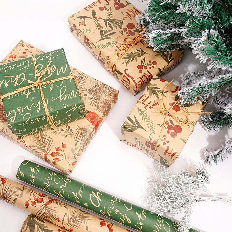 High Quality Wholesale 80g 43*300cm Christmas Kraft Luxury Gift Packaging Paper Gift Wrapping Paper