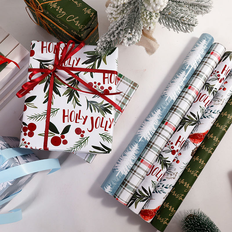 High Quality Wholesale 80g Christmas the Checkered Tree Paper Tissue 43*300cm Gift Luxury Custom Packaging Wrapping Paper Roll