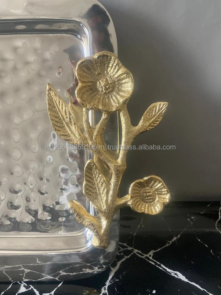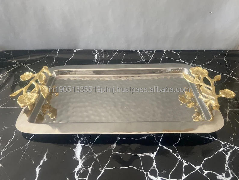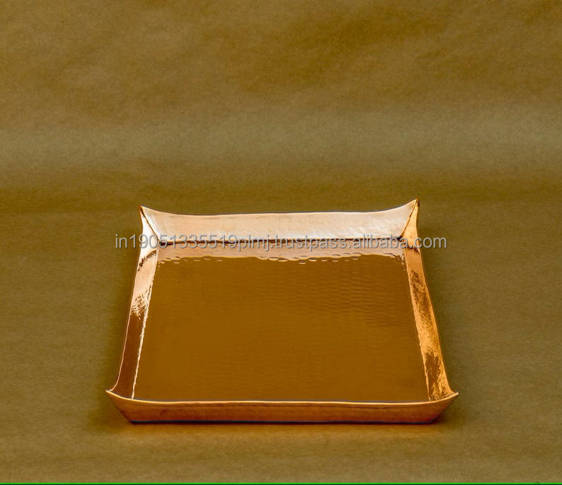 High Quality Wholesale Copper Hammered With Brass Handle Dinnerware Serving Tray for Hotels & Restaurant Supplies Metal Serving