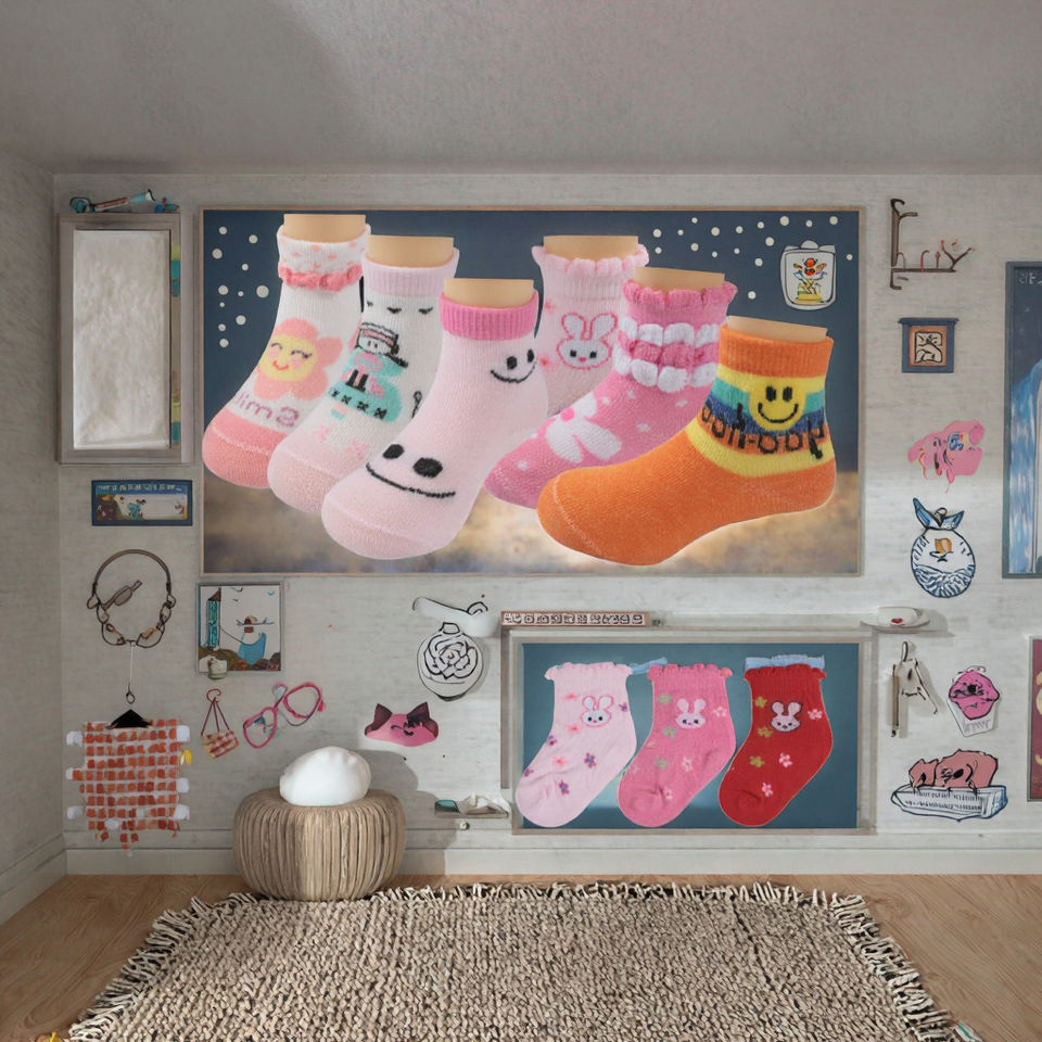 High Quality Wholesale Crew Woven 0-6 Months Baby Socks Casual Cartoon Design for Girls Spring Newborns