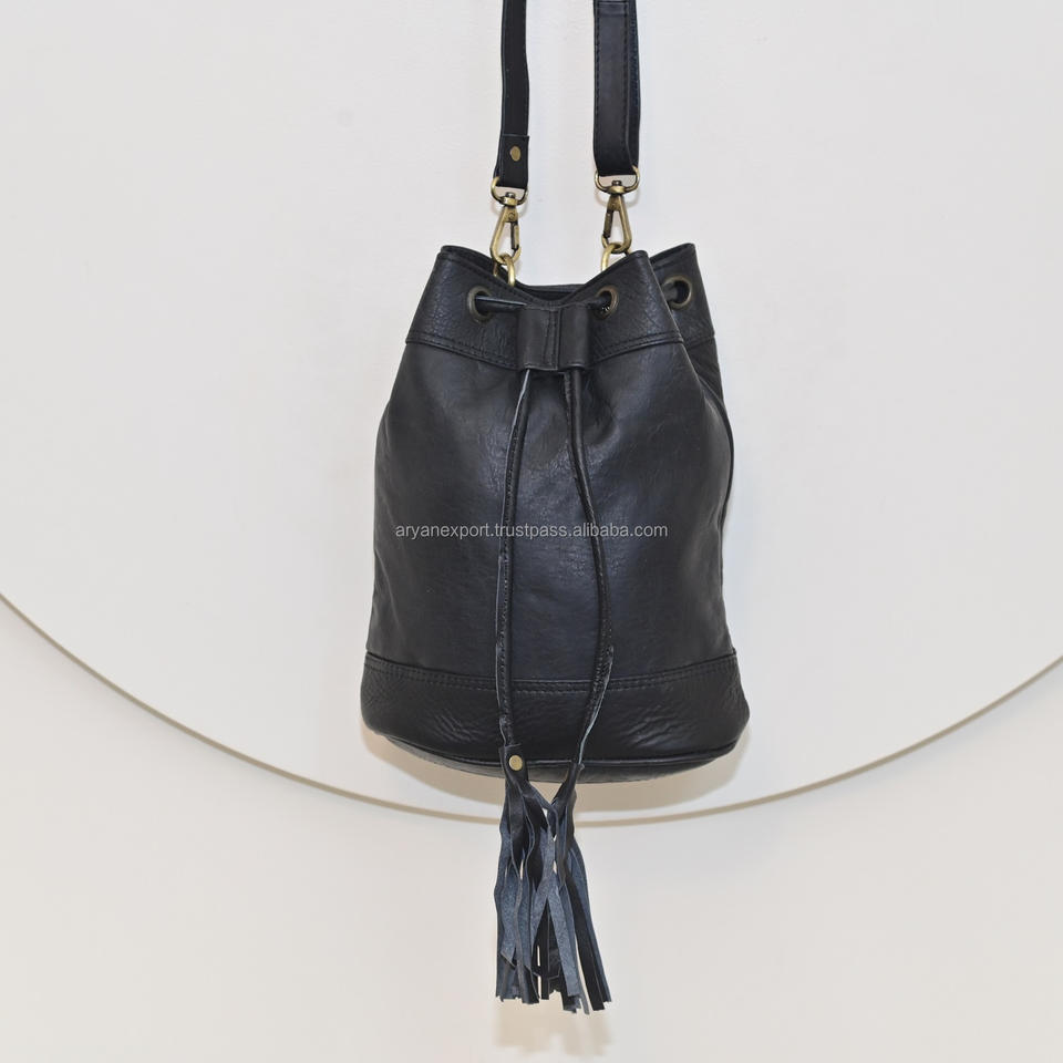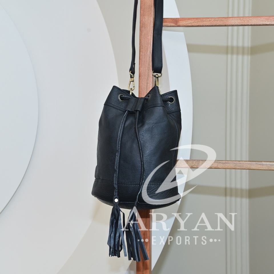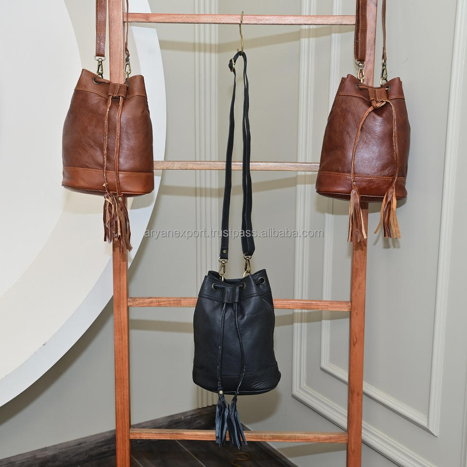 High Quality Wholesale Custom Genuine Leather Crossbody Bucket Bags for Women's Vintage Style Cowhide Leather Tassel Handbags