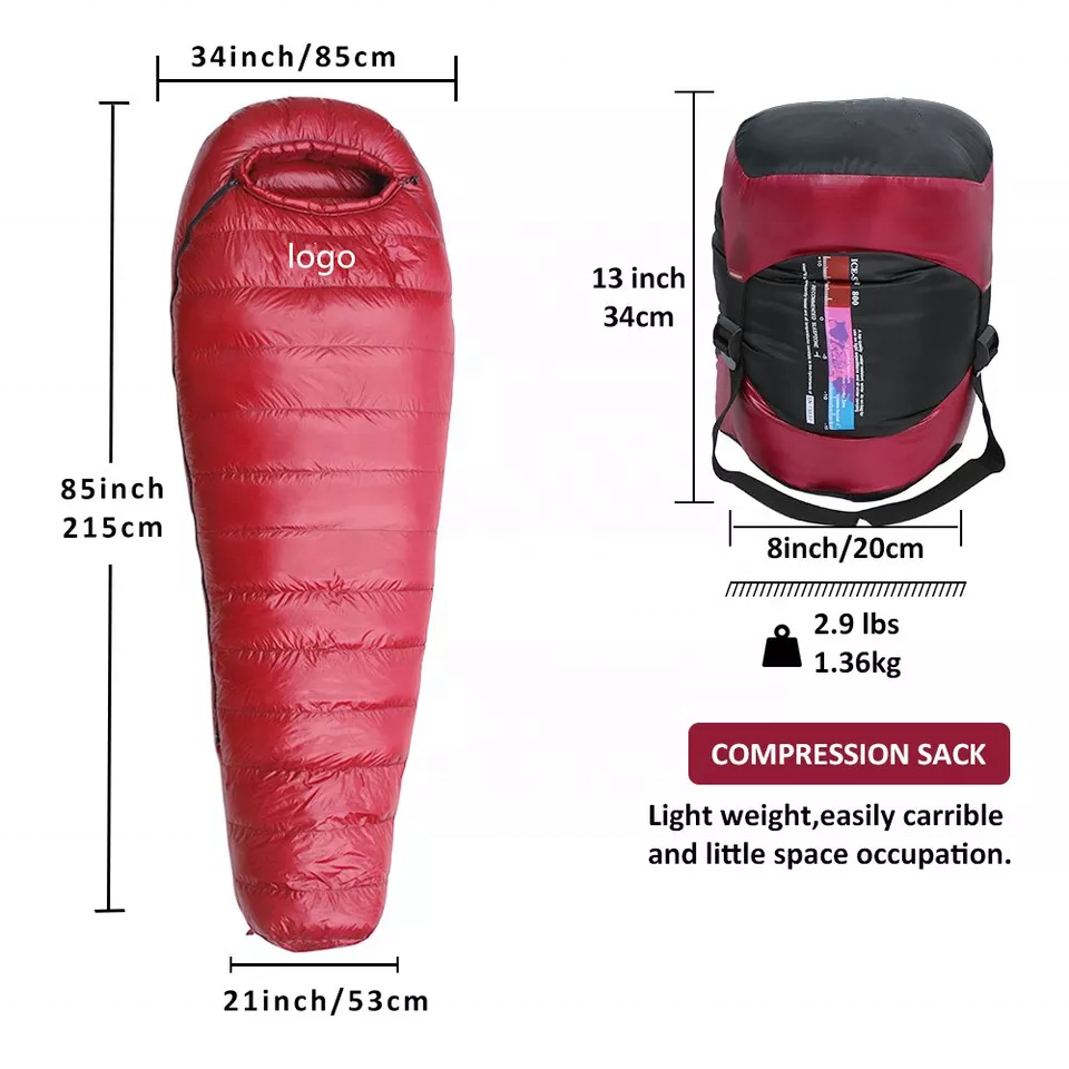 High Quality Wholesale Customized Camping Duck Down Winter Mummy Sleeping Bag Portable Down Sleeping Bag Export From Bangladesh