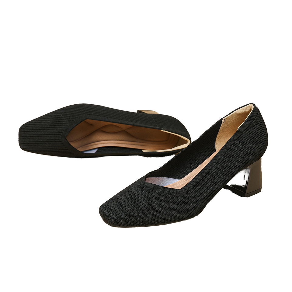 High Quality Wholesale Fashion Trend Spring Summer Square-Toe Knitted Non Slip Soft Comfort Thick Heel High Heels Shoes for