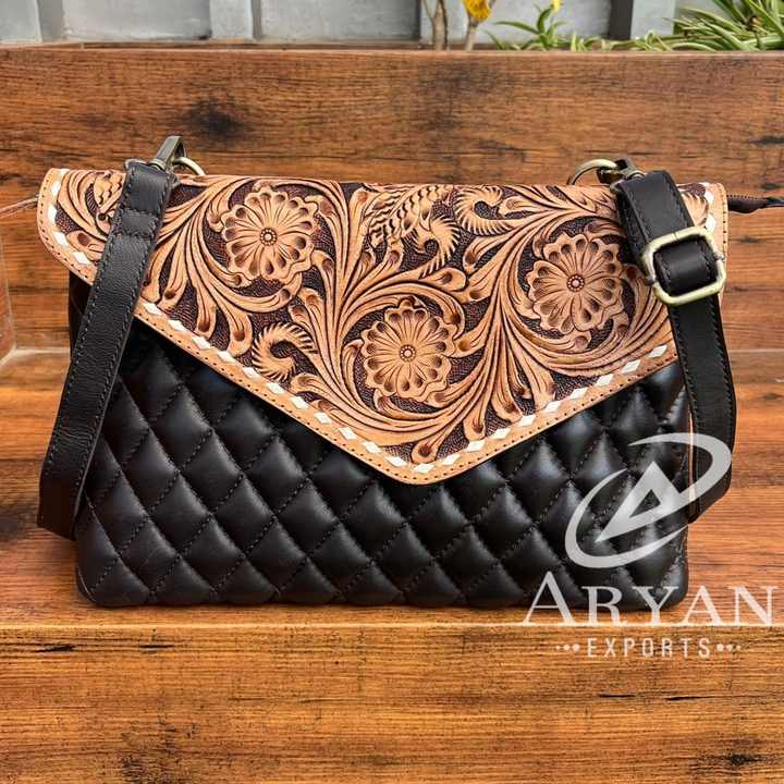 Product Name:Hand Tooled Quilted Crossbody Envelope Bag