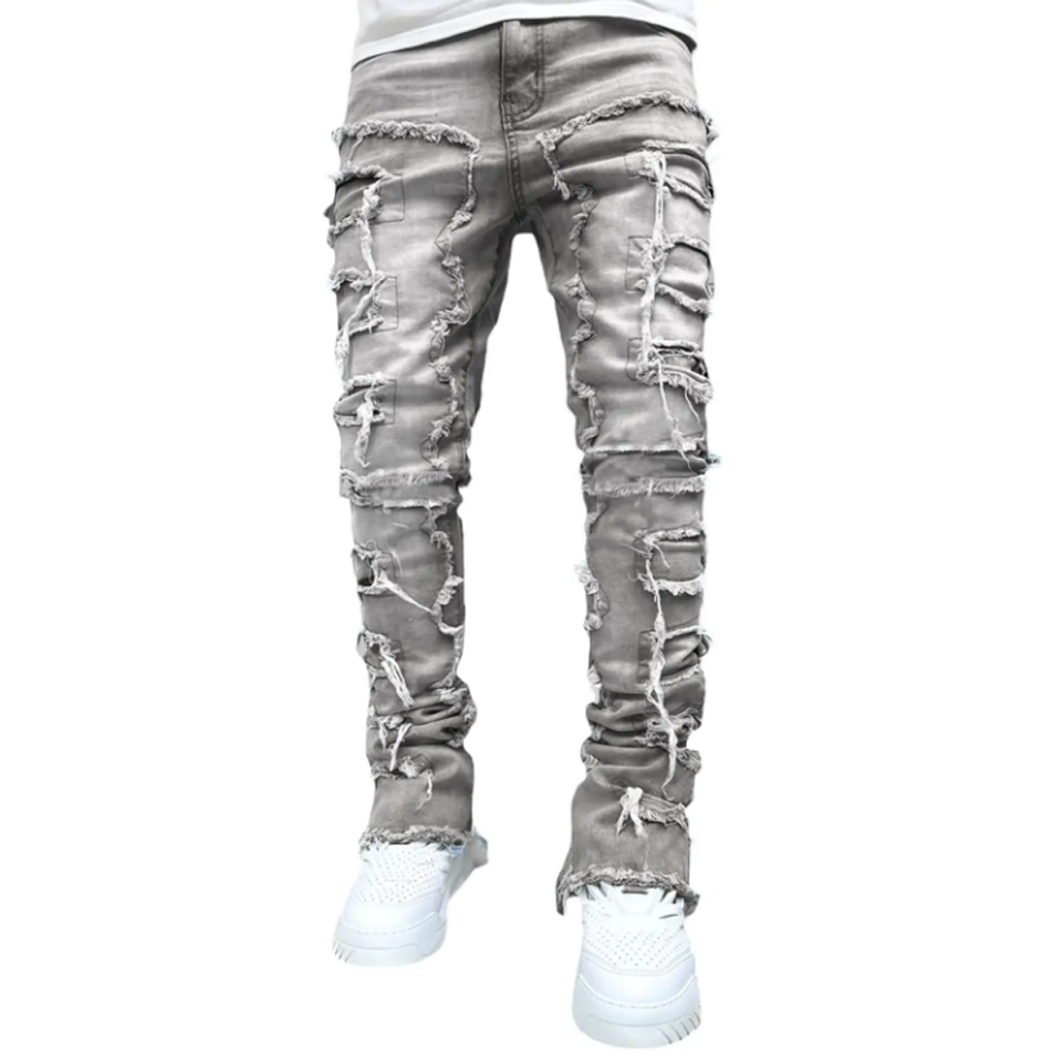 High Quality Wholesale Hot Sale Men's Jeans Fashion Man New Straight Denim Stacked Hip Hop High Street Rivet Washed Embroidery