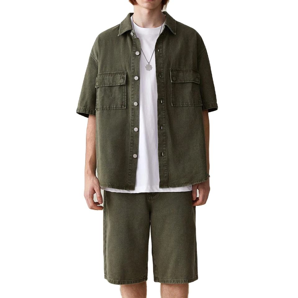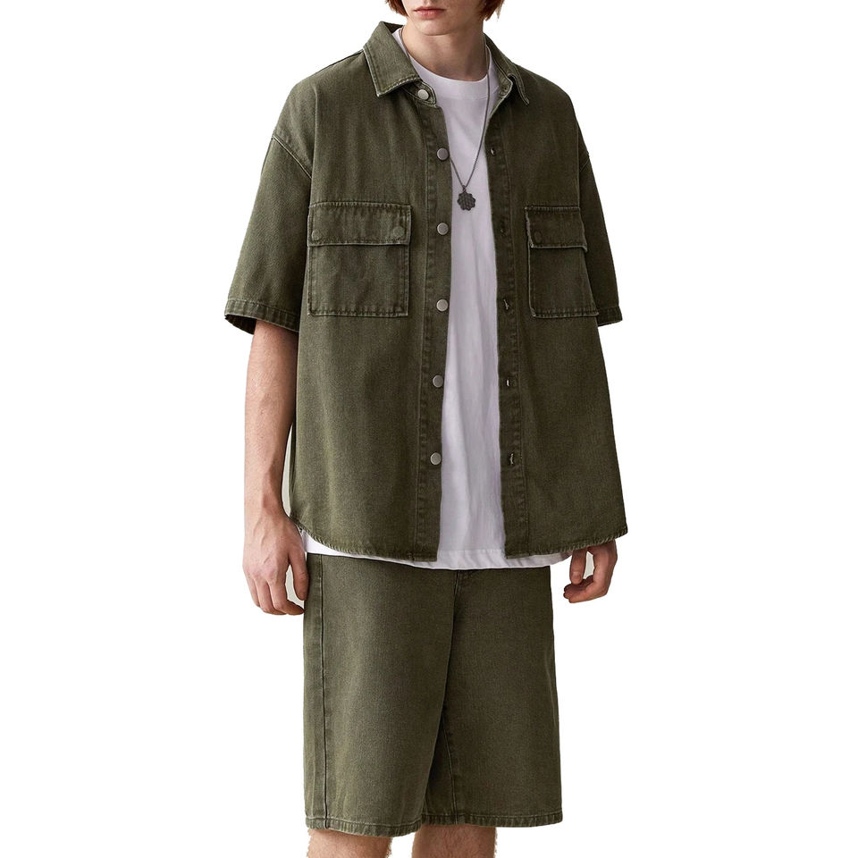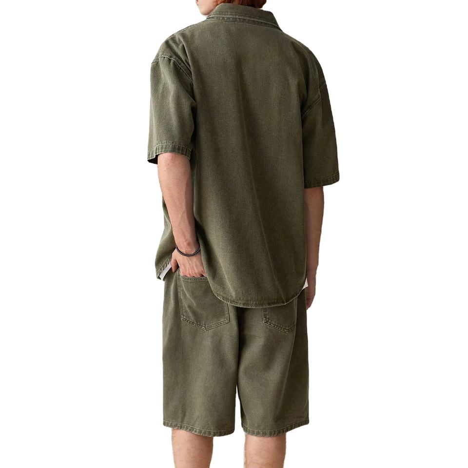 High Quality Wholesale Men's Denim Cargo Shorts Set Custom Logo Print Elastic Waist Fashionable Short Sleeve Jeans Casual Winter