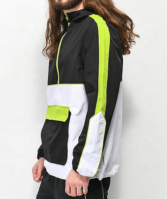 Product name:mens windbreaker down jacket/Black & White yellow Anorak Jacket