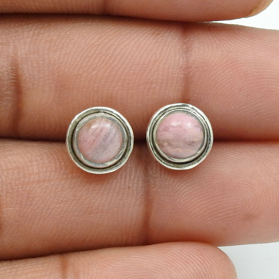 High Quality Wholesale Price 925 Sterling Silver Natural Rhodochrosite Gemstone Round Shape Stud Earrings Handmade Jewelry India