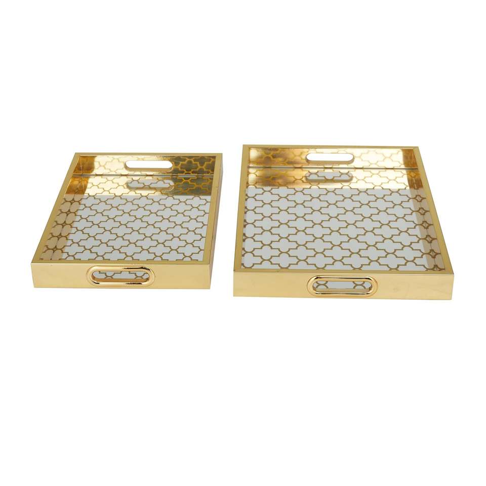 High Quality Wholesale Price Geometric Mirrored Living Room Decor Tray, Set of 2 16", 14"W