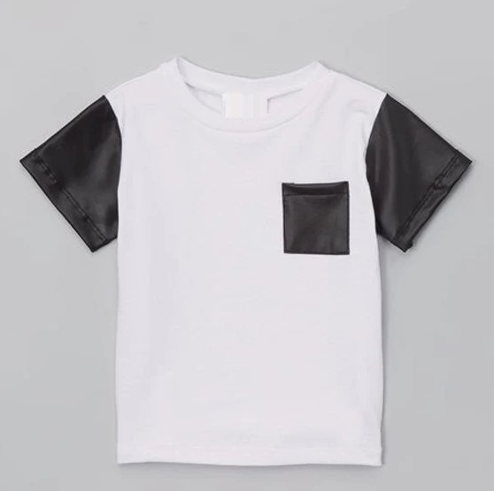 High Quality Wholesale Price Men Leather Custom Design Half Sleeves Pu Leather Sleeved T Shirt Breathable Black T Shirt for Man