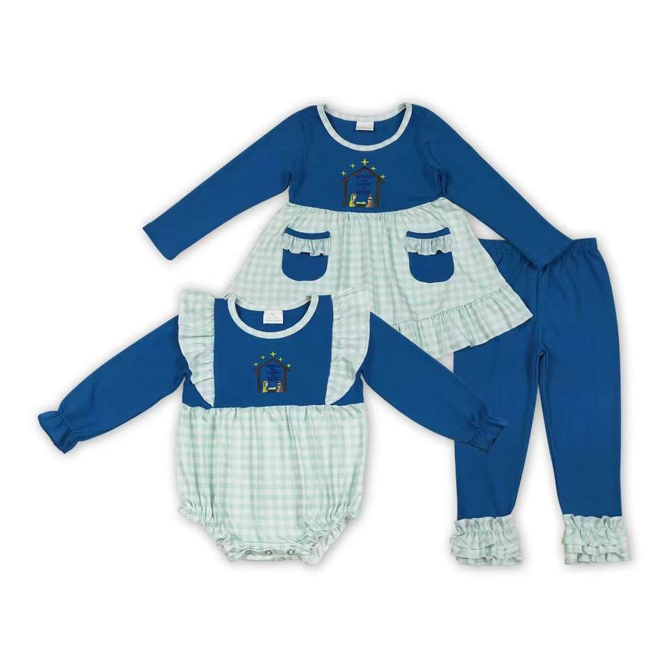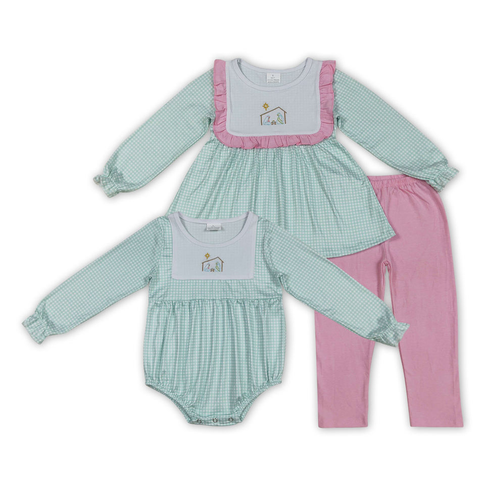High Quality Wholesale Ready to Ship Clothing Baby Girls Nativity Long Sleeve Tunic Top With Pink Leggings Boutique Outfit