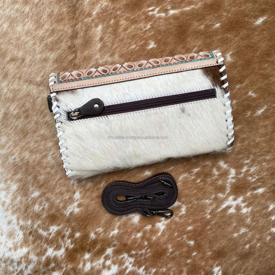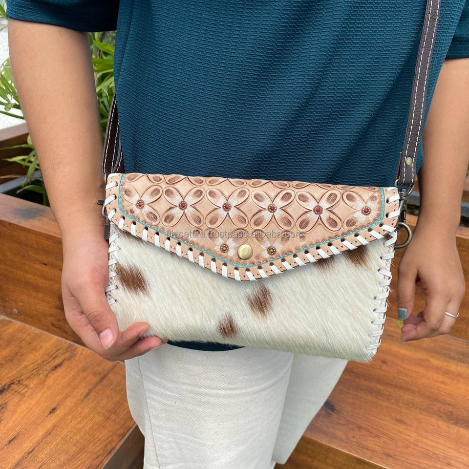 High Quality Wholesale Real Cowhide Leather Tooled Carving Crossbody Wallet Purse for Women Handmade Leather Multi Uses Clutch