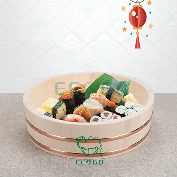 High Quality Wholesale Rice Serving Bowl Sushi Bowl Wooden Tub for Kitchen Sushi Mixing Wooden Bamboo Eco Friendly